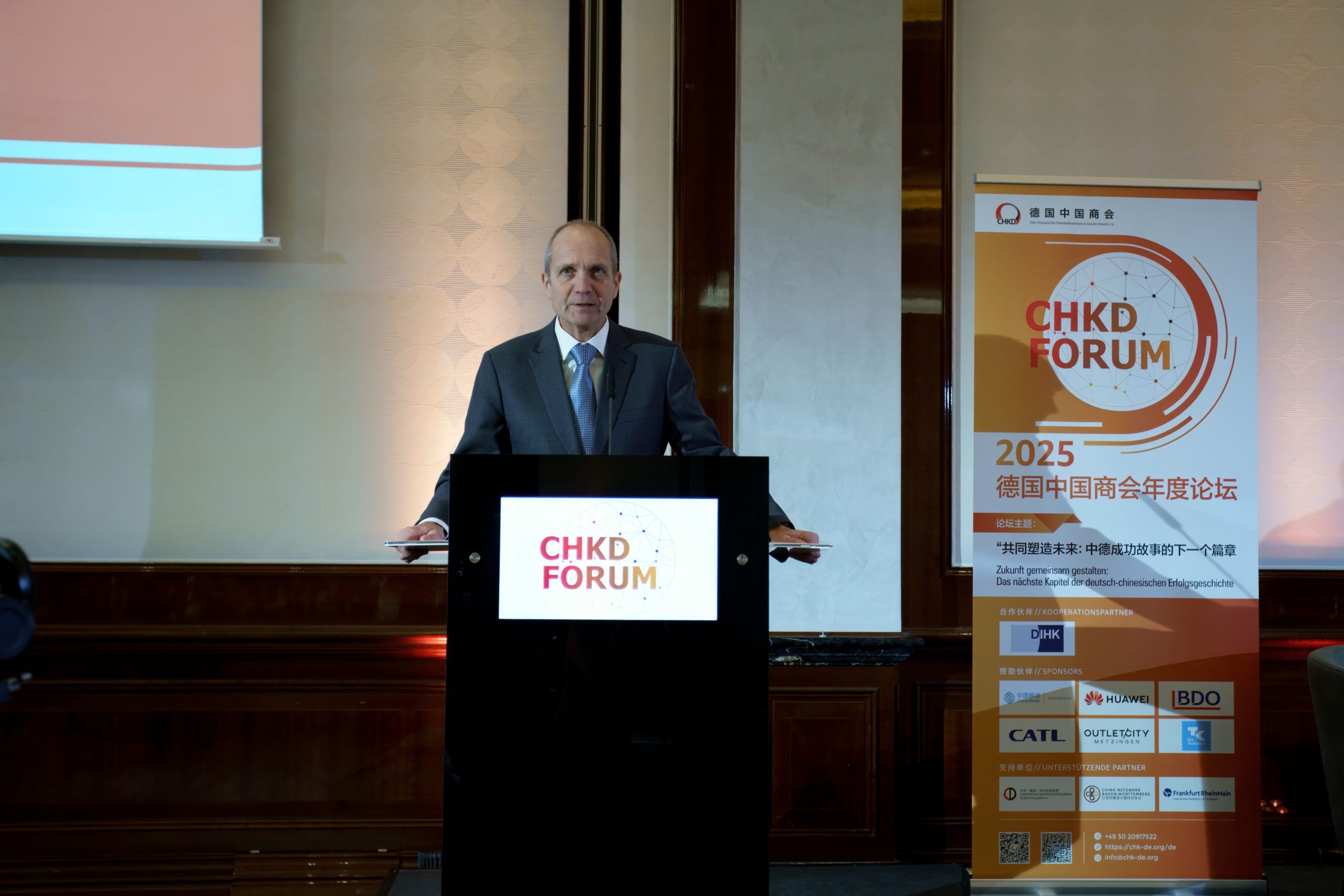 Als eines der wichtigsten bilateralen Wirtschaftstreffen hat sich das CHKD Forum der Chinesischen Handelskammer in Deutschland über viele Jahre hinweg zu einer zentralen Dialogplattform zwischen chinesischen und deutschen Unternehmen und Vertretern aus Politik und Wirtschaft in Deutschland entwickelt. Gerade vor dem Hintergrund zunehmender geopolitischer Spannungen gewinnt dieses konstruktive Austauschformat weiter an Bedeutung und leistet einen wertvollen Beitrag zur Stärkung der wirtschaftlichen Beziehungen zwischen beiden Ländern.