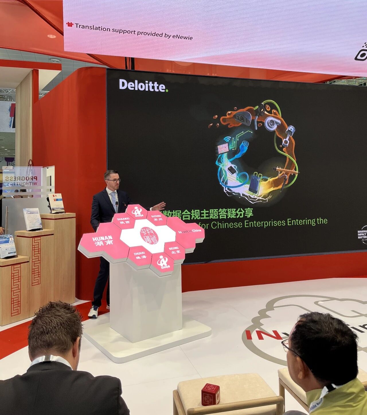 为支持更多中资企业“走出来”,提升会员服务质量,拓宽服务深度,2026年4月20日至24日汉诺威工业展期间,商会与中国国际投资促进中心(德国)合作,以“中国企业在德经营服务台”的形式,在现场与中资企业进行对接。展会期间,多家优秀的商会咨询网络会员企业凭借自身业务优势,为参展企业提供有关德国市场准入、法律合规、用工及税务政策、跨文化管理等多方面支持和指引,助力企业更好地融入德国及欧洲市场。安睿国际律师事务所(Eversheds Sutherland)分享德国公司设立与合规运营法律要点,涵盖公司形式、设立流程及税务与合规管理。德国本傲会计事务所(RSM Ebner Stolz)向与会嘉宾解析中国企业在德投资的税务合规与风险管理,涵盖税制环境、投资结构及转移定价等关键点。才维欧洲(Chiway Europe GmbH)围绕中资企业在德用工合规,从用工成本结构、劳动合同要点到常见法律风险及应对策略进行系统性梳理,帮助企业建立本地化合规的人力资源管理体系。共创欧洲专利律所(CocreateIP European Patent Attorney Law Firm)聚焦中资企业由参展迈向德国市场过程中的知识产权布局与合规问题,结合专利、商标及商业秘密等典型风险场景,提出前置规划与系统化管理的重要性。德勤围绕中资企业进入德国市场的数据合规议题展开分享,从欧盟监管框架出发,结合企业出海全流程解析数据治理与风险管控的关键要点,助力企业实现稳健合规发展。L&B International以中资制造业项目为案例,列举企业在欧洲推进过程中面临的跨文化管理与本地化挑战,并从项目落地与合作实践角度提炼关键经验与成功要素。从中资企业落地德国的全流程需求出发,德中信(Zonssen)推广其一站式服务体系,涵盖公司注册、签证投资、法务财税及企业运营支持,推动企业高效实现本地化布局与长期发展。此次活动在展会期间吸引了众多来自各行业有意进入德国市场的中资企业,企业在此深入交流、拓宽视野。在多方专业机构的支持下,活动不仅实现了信息共享与资源对接,也进一步发挥了商会在整合跨领域服务资源、搭建中德企业沟通桥梁以及为中资企业出海提供系统性支持中的平台价值与枢纽作用,持续赋能企业在德国乃至欧洲市场的稳健发展。